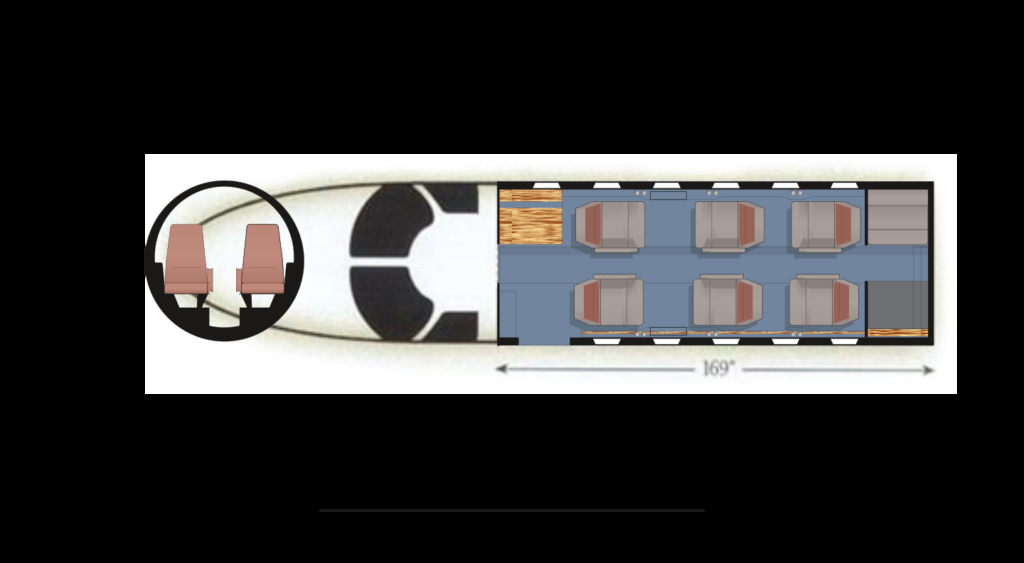 The cabin of the CJ2+ is almost identical to the cabin of the CJ2. Seats are available for six passengers, which can track into the aisle and away from the sidewalls for greater comfort. Folding side tables are available for all seats and can be stored in the side walls. For your convenience the cabin is equipped with 110-volt power outlets. The CJ2+ was redesigned with extra soundproofing for a quieter flight. Three baggage compartments can carry a total of up to 1,100 pounds of luggage.