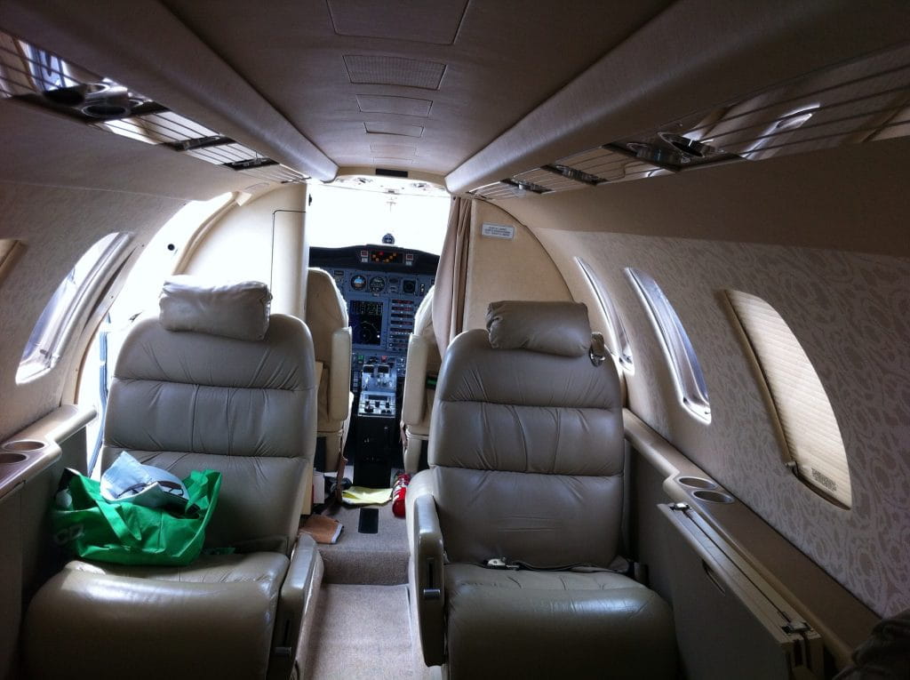Made by one of the largest aircraft manufacturers in the world, Brazil-based Embraer, the Phenom 100 is a very light twin engine jet. Able to accommodate four passengers and a single pilot, this small private jet is ideal for individuals or small companies.